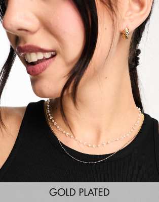Orelia – Naszyjnik warstwowy powlekany 18-karatowym złotem z kryształkami i perełkami