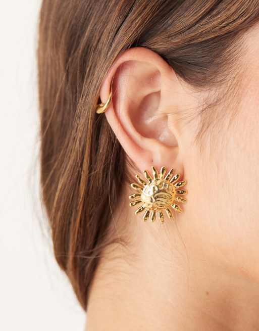 Orelia – Platerowane 18-karatowym złotem kolczyki wkrętki w kształcie słońca z efektem stopienia