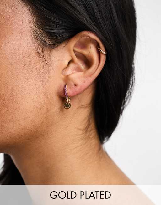 Orelia – Pozłacane małe kolczyki koła z zawieszkami z uśmiechniętą buźką