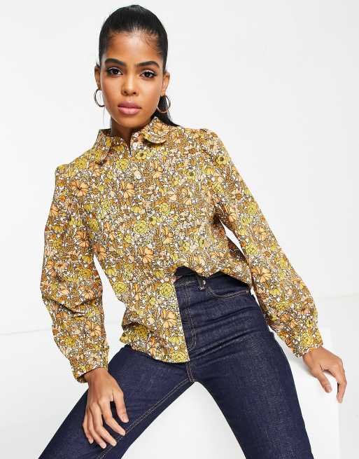 & Other Stories – Bawełniana bluzka z falbanką w kwiatowy wzór w stylu lat 70. – MULTI