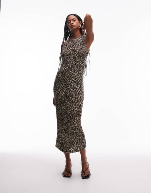 & Other Stories – Beżowo-czarna sukienka maxi z szydełkowej dzianiny ze splecionym wzorem