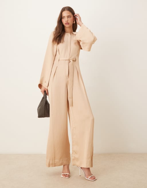 & Other Stories – Beżowy kombinezon z paskiem i rozcięciem na rękawach