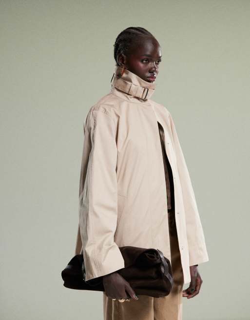 & Other Stories – Beżowy krótki prochowiec z wysokim kołnierzem z paskiem