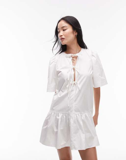 & Other Stories – Biała sukienka mini z obniżonym stanem i wiązaniem z przodu