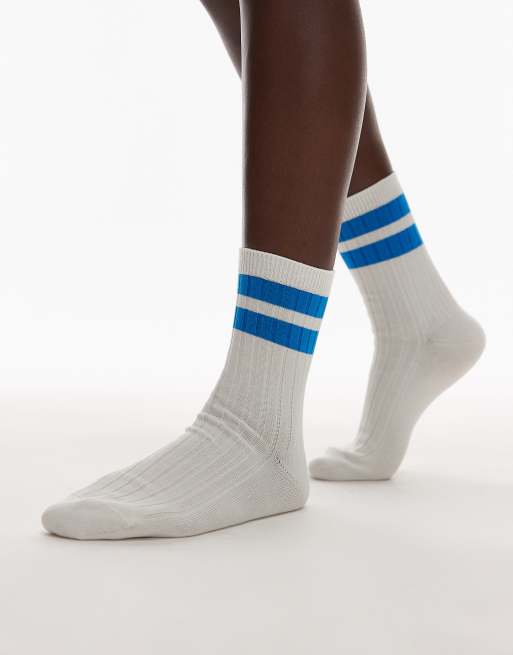 & Other Stories – Białe prążkowane skarpetki z niebieskim kontrastowym brzegiem