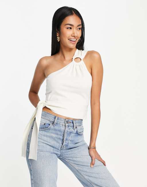 & Other Stories – Biały dzianinowy top na jedno ramię z pierścieniem
