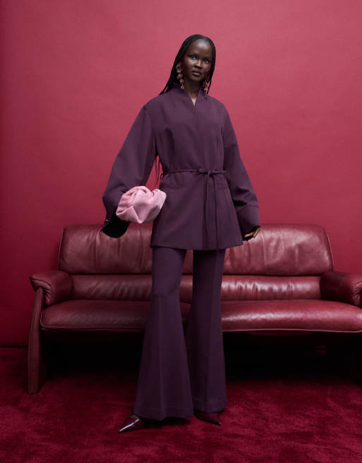 & Other Stories – Bordowe eleganckie spodnie z rozszerzanymi nogawkami, część zestawu