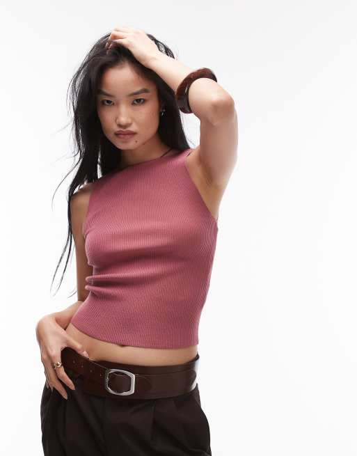 & Other Stories – Bordoworóżowy dzianinowy top bez rękawów z dekoltem w łódkę