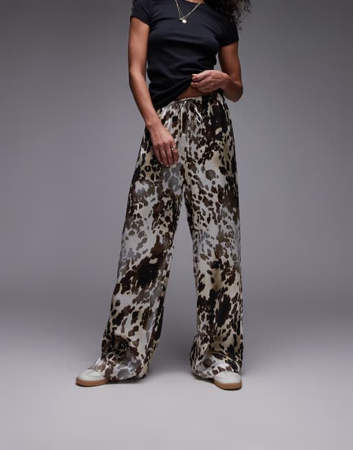 & Other Stories – Brązowe wciągane spodnie z szerokimi nogawkami z satyny w zwierzęcy wzór