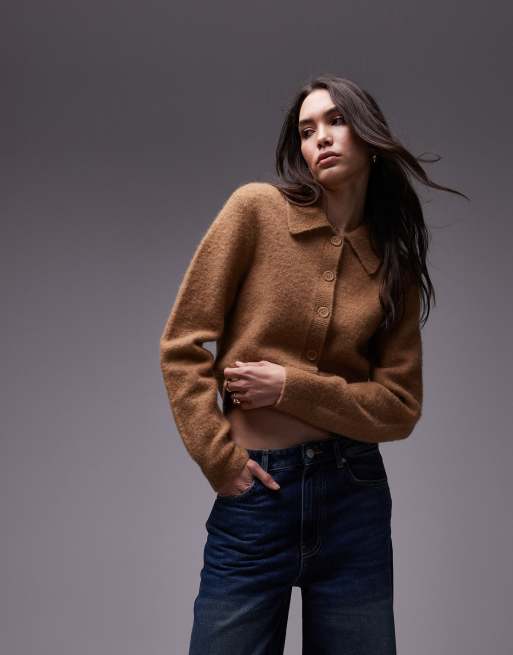 & Other Stories – Brązowy kardigan z kołnierzem z domieszką wełny alpaki