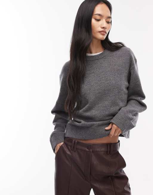 & Other Stories – Ciemnoszary sweter o pudełkowym kroju z mieszanki bawełny i wełny