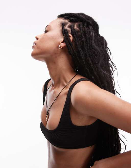 & Other Stories – Czarna gnieciona góra bikini z dekoltem U z przodu i głębokim wycięciem z tyłu
