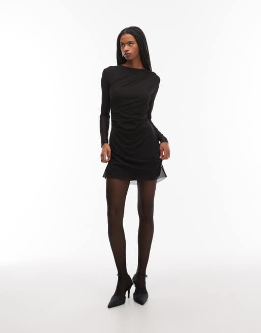 & Other Stories – Czarna siateczkowa sukienka mini z długimi rękawami i drapowaniem