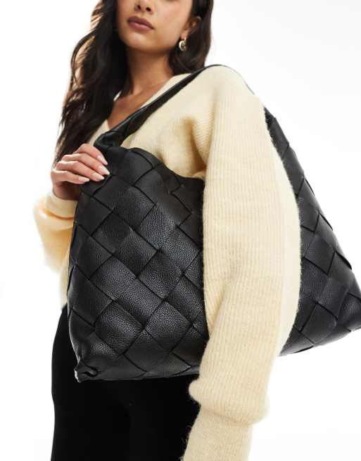 & Other Stories – Czarna skórzana pleciona torba typu tote