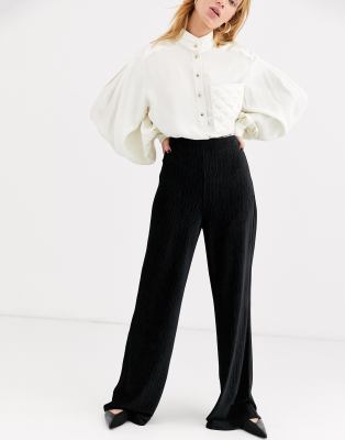& Other Stories – Czarne plisowane spodnie z szerokimi nogawkami