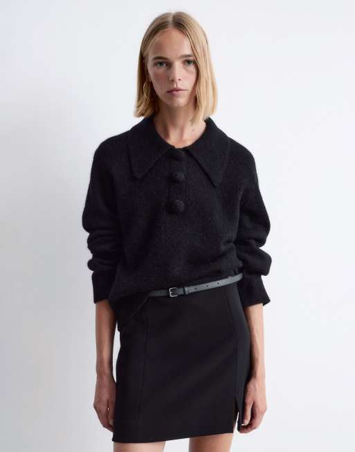 & Other Stories – Czarny sweter z kołnierzykiem, z puszystej dzianiny z wełny alpaki