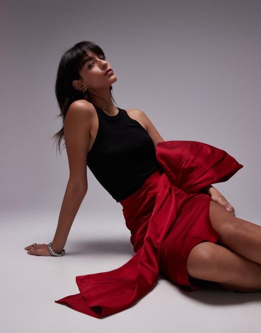 & Other Stories – Czerwona spódnica ołówkowa midi z wiązaniem na kokardką