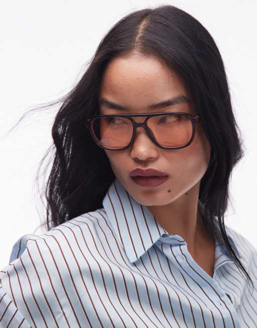 & Other Stories – Czerwonobordowe kwadratowe okulary przeciwsłoneczne oversize w stylu retro