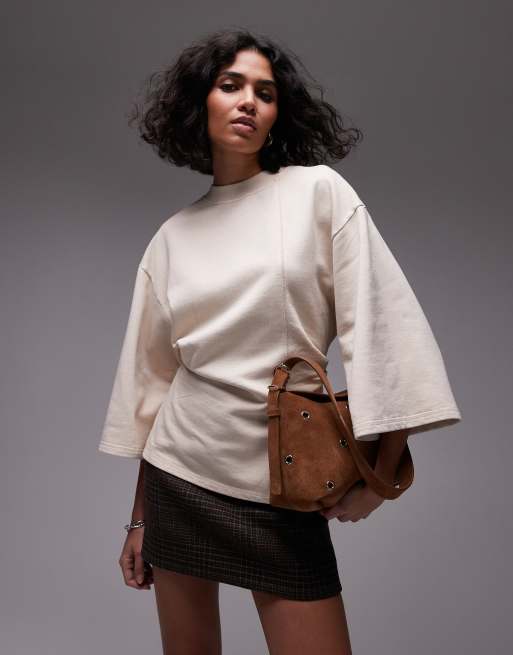 & Other Stories – Gruby beżowy T-shirt z gorsetową talią i krótkim rękawem