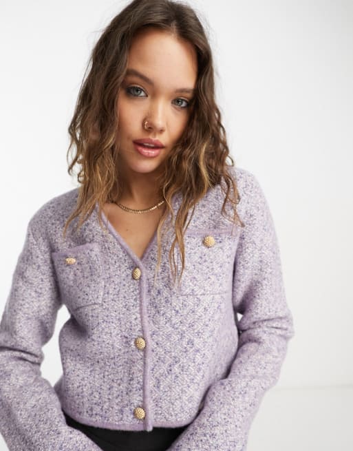 & Other Stories – Liliowy wełniany zestaw: kardigan i spódnica mini