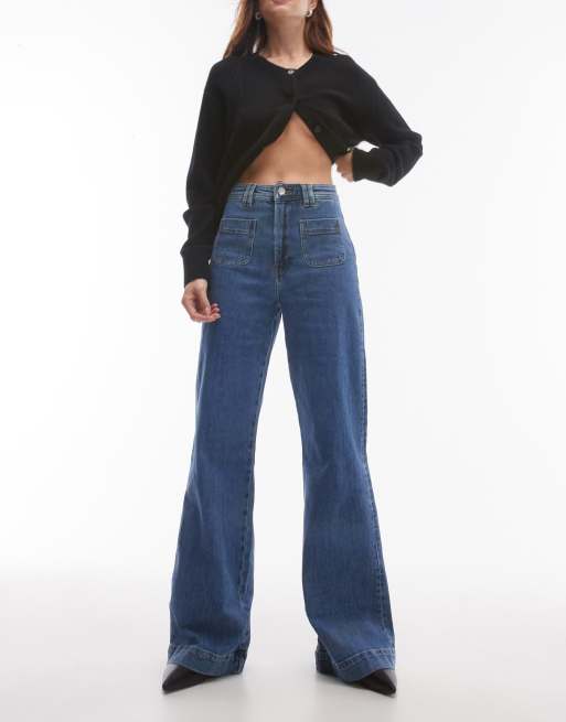 & Other Stories – Niebieskie dzwony jeansowe z wysokim stanem i naszywanymi kieszeniami