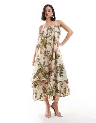 & Other Stories – Obszerna dwuwarstwowa sukienka midaxi w roślinny wzór