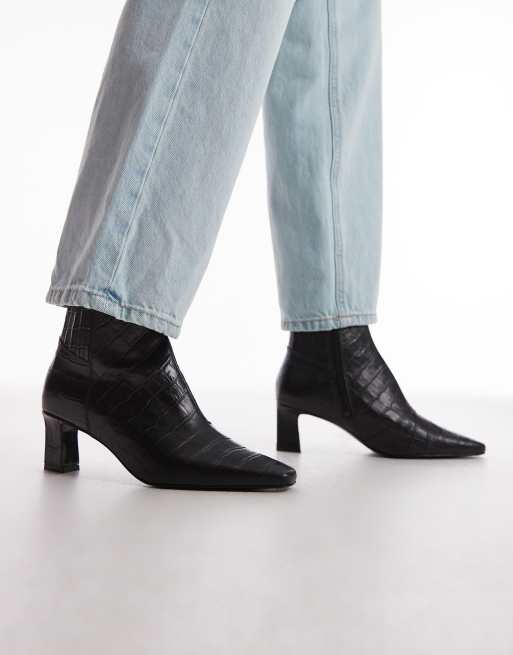& Other Stories – Premium – Czarne botki do kostki na obcasie we wzór skóry krokodyla