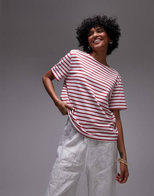 & Other Stories – T-shirt o luźnym kroju z krótkim rękawem w czerwono-białe paski