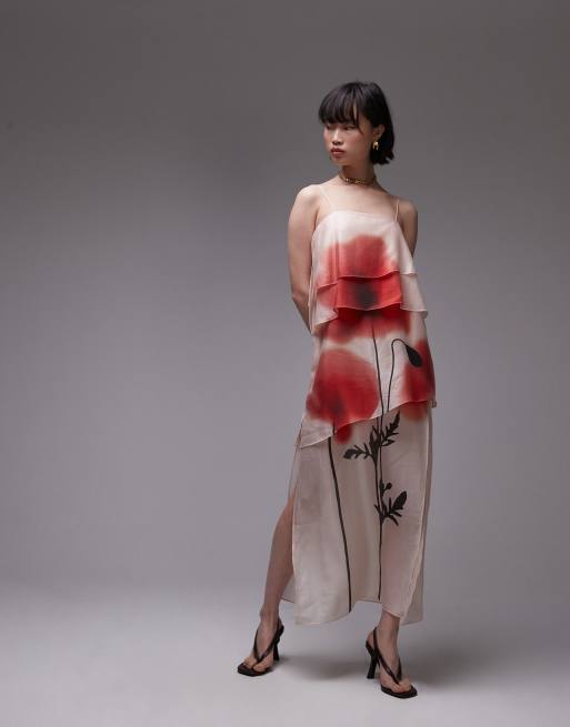 & Other Stories – Warstwowa sukienka maxi z prześwitującego szyfonu z dużymi kwiatami