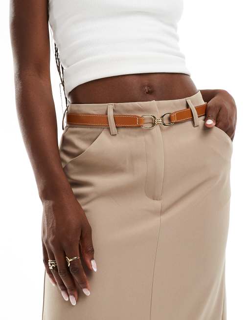 & Other Stories – Wąski jasnobrązowy skórzany pasek ze złotą klamrą