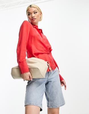& Other Stories – Wiązana w talii kopertowa koszula w czerwonym kolorze