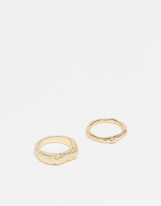 & Other Stories – Zestaw 2 fakturowanych pierścionków w kolorze złotym