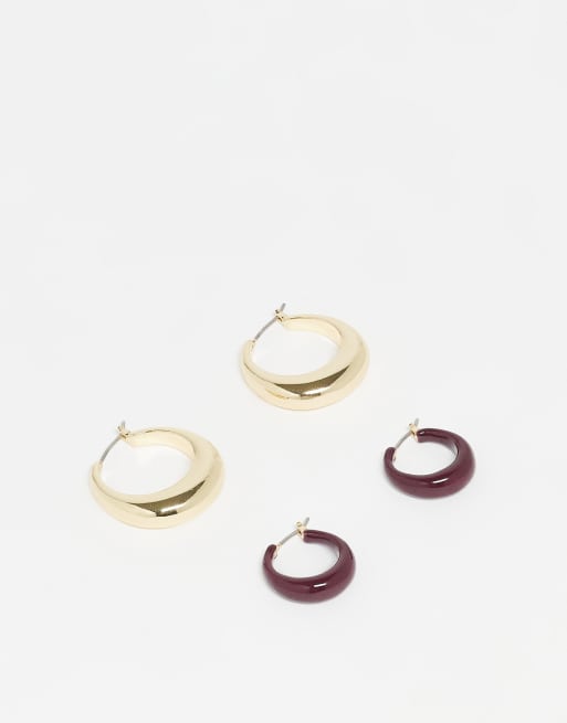 & Other Stories – Zestaw 2 par małych kolczyków-kół w kolorze złotym i ciemnoczerwonym