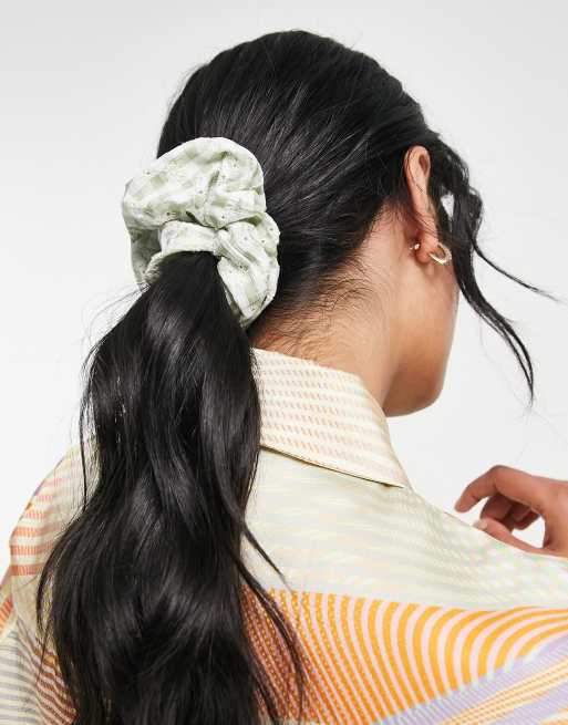& Other Stories – Zielona gumka do włosów z wyhaftowanym wzorem w stokrotki