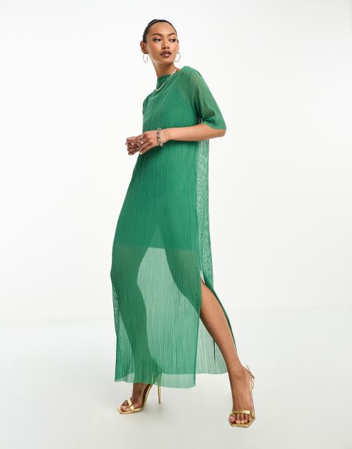 & Other Stories – Zielona plisowana sukienka siateczkowa midi