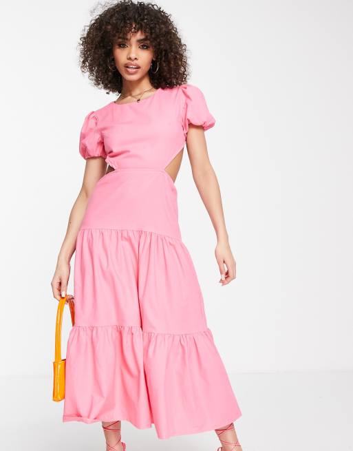 Parallel Lines – Kaskadowa sukienka maxi z odkrytymi plecami w kolorze fuksji