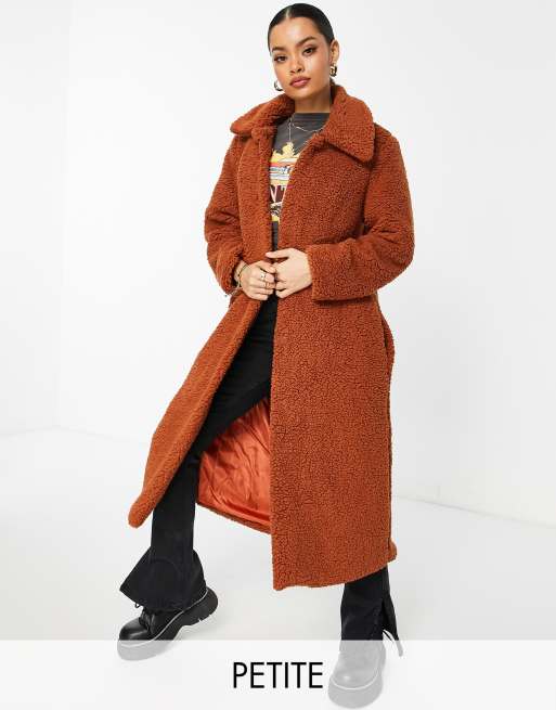 Parisian Petite – Miedziany długi płaszcz ze sztucznego kożuszka
