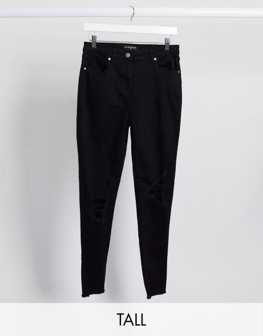 Parisian Tall – Czarne jeansy o obcisłym kroju z rozdarciem na kolanie