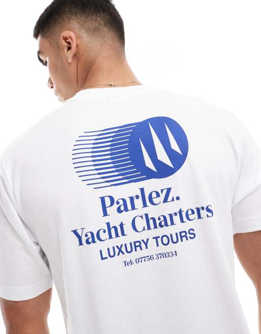 Parlez – Charter – Biały T-shirt z nadrukiem z logo na plecach
