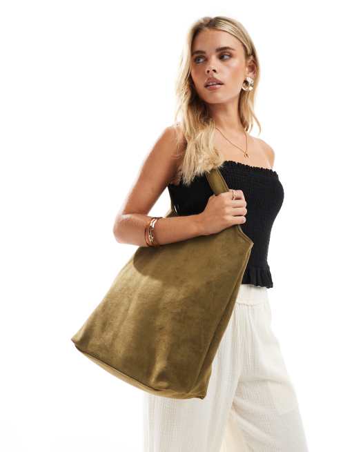 PASQ – Ciemnozielona trapezowa torebka na ramię typu tote z imitacji zamszu