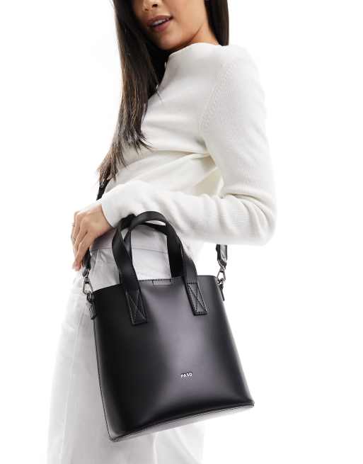 PASQ – Czarna mała torba typu tote z odpinanym paskiem crossbody