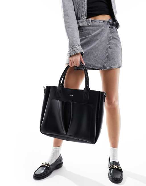 PASQ – Czarna torba typu tote z dwiema kieszeniami