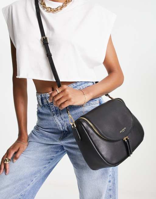 Paul Costelloe – Czarna skórzana torebka crossbody z klapką