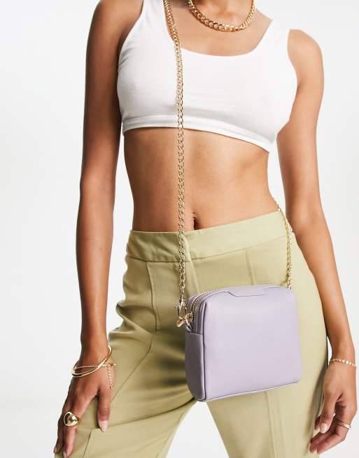 Paul Costelloe – Liliowa prostokątna torebka ze skóry z ozdobnym łańcuszkiem