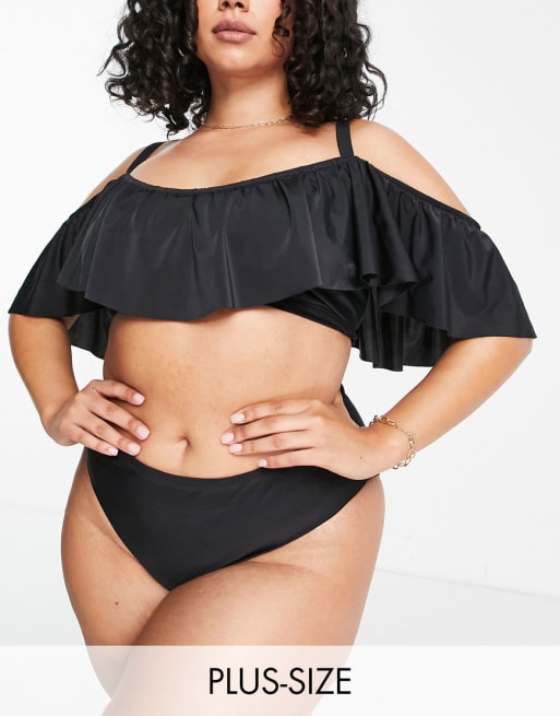 Peek & Beau Curve – Czarne bikini z odsłoniętymi ramionami i falbanką – Tylko w ASOS