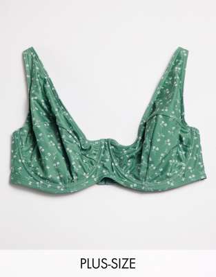 Peek & Beau Curve – Zielona góra od bikini z fiszbinami w kwiatowy wzór