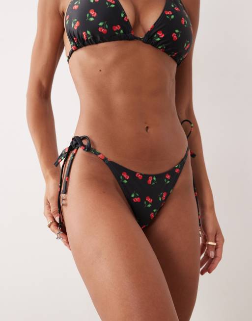 Peek & Beau – Czarny wiązany po bokach dół od bikini we wzór w wisienki