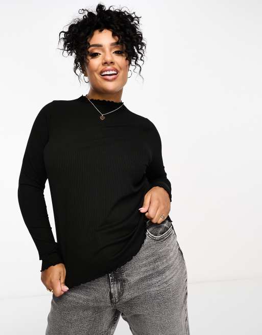 Pieces Curve – Czarny top z karbowanym brzegiem
