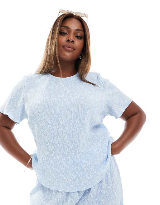 Pieces Curve – Jasnoniebieski plisowany krótki T-shirt w drobny kwiatowy wzór, część zestawu