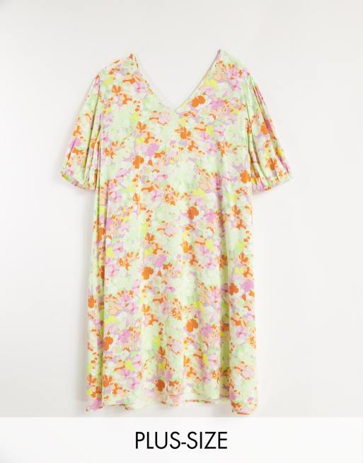 Pieces Curve – Kremowa luźna sukienka mini z bufkami i wzorem w kwiaty